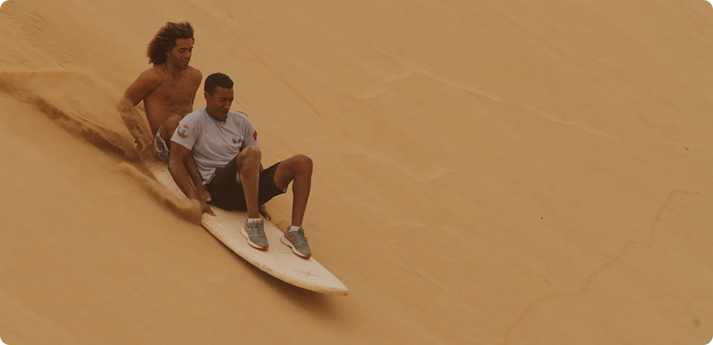 On days when conditions aren't right for getting in the water, discover sessions like no other: Carve-Board! Glide along the gentle slopes of the Agadir heights at the foot of the remains of the ancient Kasbah d'Agadir fortress. All the pleasure of surfing without the danger: ideal for working on your supports, trajectories and curves, but also for learning to generate and control your own speed.