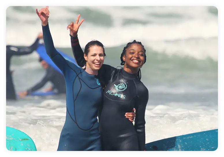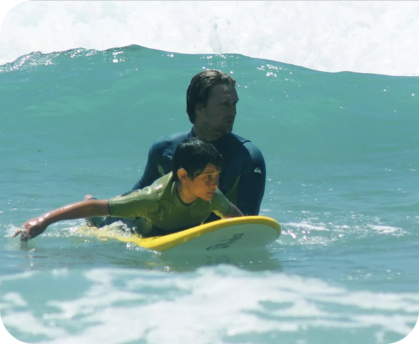 On the surfing side, you'll join the group that matches your level and benefit from the expert advice of our instructors; safety, encouragement and debriefing will accompany you throughout your stay;