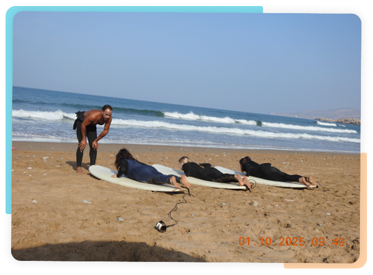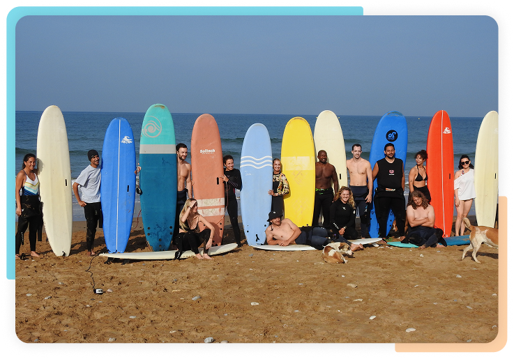 Our courses in surf training Morocco are usually organized in small groups of five to eight people. These groups are formed by level and age group. The small number of individuals and the homogeneity of the groups mean that each instructor can effectively guide all participants. Our surfing courses are designed to be as close as possible to the needs and desires of each individual.