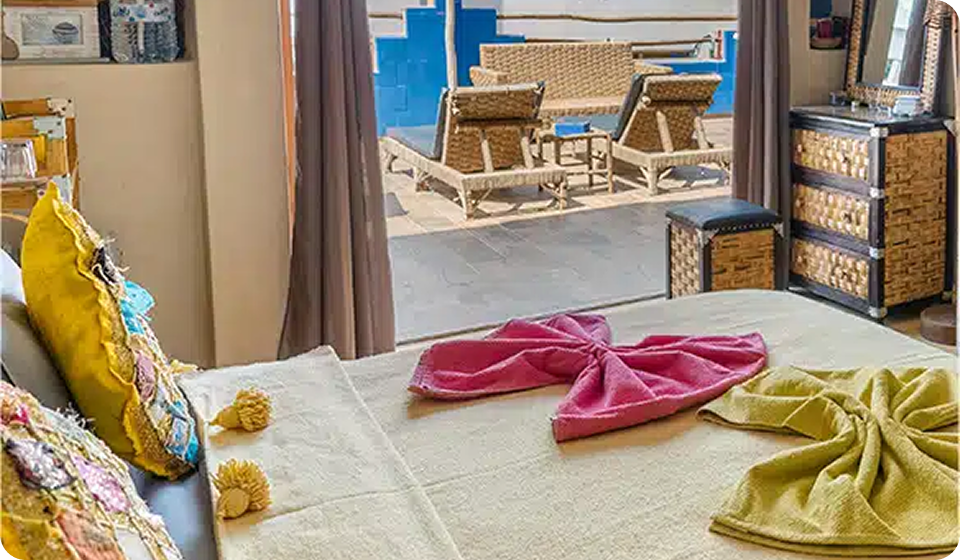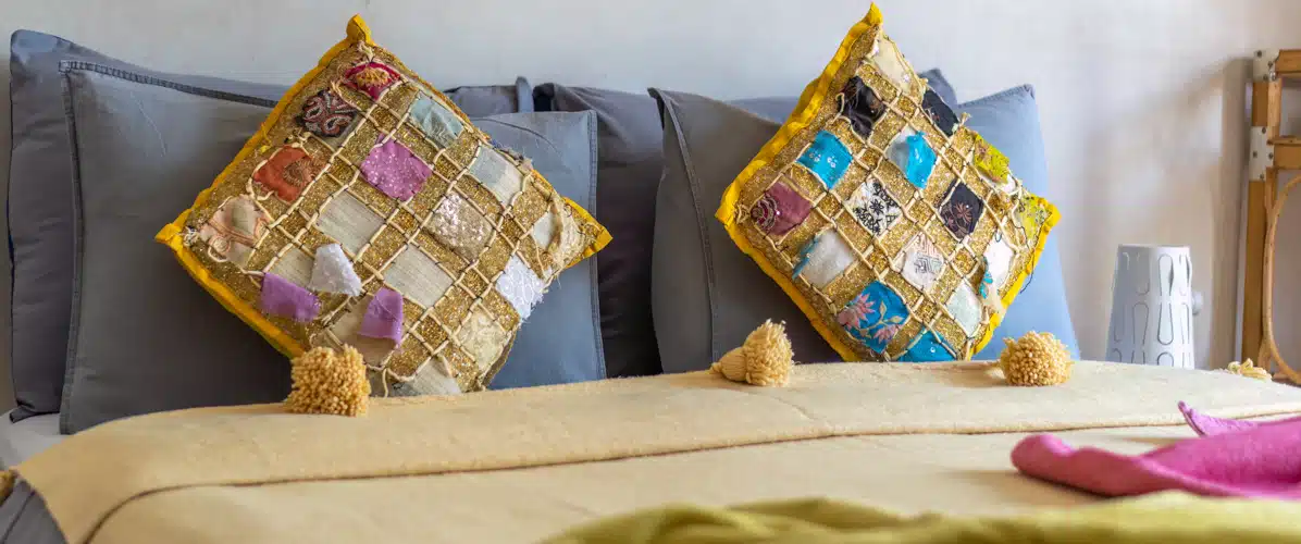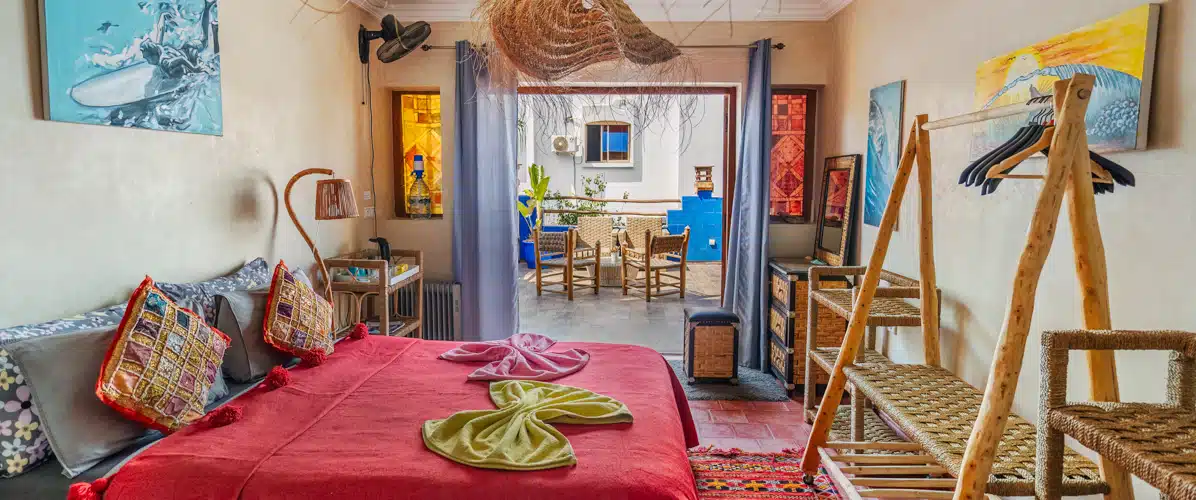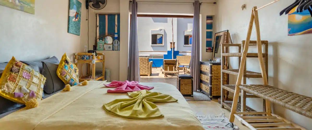 Travaillant en collaboration avec les artisans de la région, vous trouverez dans vos chambres des meubles en bois, le carrelage à l’ancienne et les murs en Tadelakt, donc, tous les traits de la tradition marocaine.