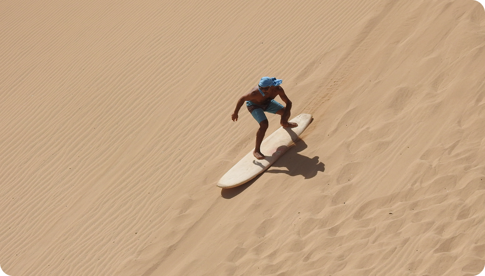 Vous ne pouvez pas surfer dans l’eau? sur le bitume non plus? Pas de panique, vous pouvez encore surfer dans les dunes dont la nature nous a fait grâce! Amusez-vous dans tout ce désert qui s’offre à vous!