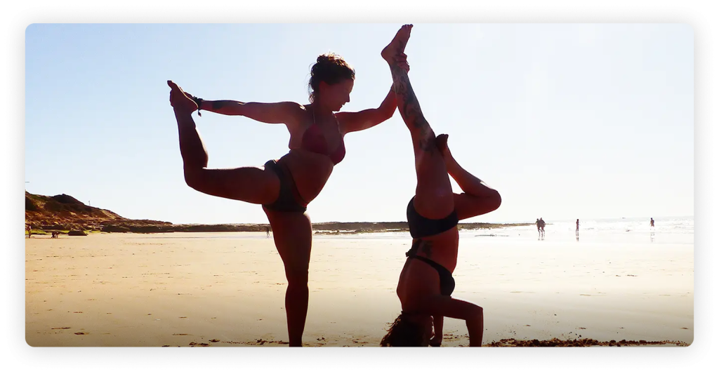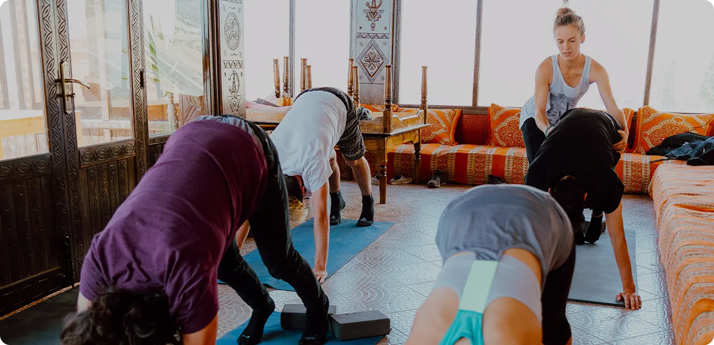 Free Surf Maroc vous propose des séances de yoga: cette tradition indienne, connue de tous et pratiquée par des milliers de personnes dans le monde depuis des millénaires, est une technique qui propose de libérer le mental et le corps des contraintes du quotidien par la pratique d’exercices axés sur la respiration et la méditation. Vous profiterez de ses bienfaits pour récupérer après une belle journée de surf et éviterez courbatures et autres traumatismes liés à la pratique du surf.