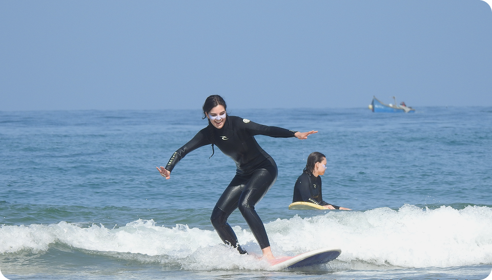 Coté surf, sécurité et conseils avisés vous accompagneront tout au long de votre séjour et vous permettrons de surfer à votre rythme et de prendre vos vagues; Si vous êtes de niveau débutant et/ou intermédiaire, vous pourrez intégrer le groupe correspondant et surfer des spots adaptés;
